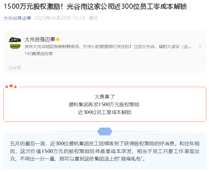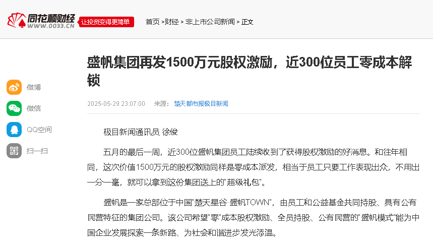 蒲月的一开始一个星期,近300位盛帆小团体公司员工连继收等到了有股份权支持的好声响。和近几年不异,本次时间和精力11000万元的股份权支持一模一样是零···